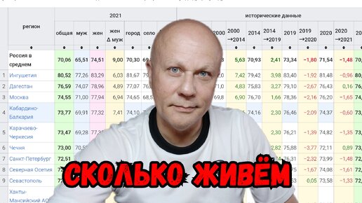 Продолжительность жизни в России по регионам. Данные Росстата.