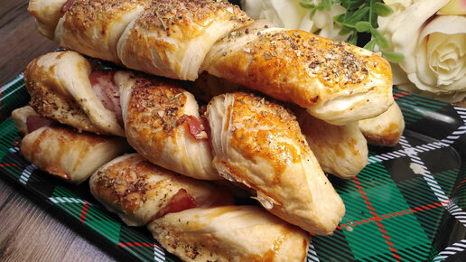 Быстрая и вкусная закуска из слоеного теста с беконом