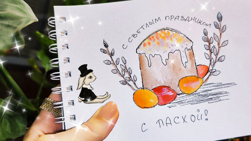 Как нарисовать кулич с яйцами 4 класс? Мега простой способ нарисовать Пасху для открытки или плаката 🍬🐰🌺