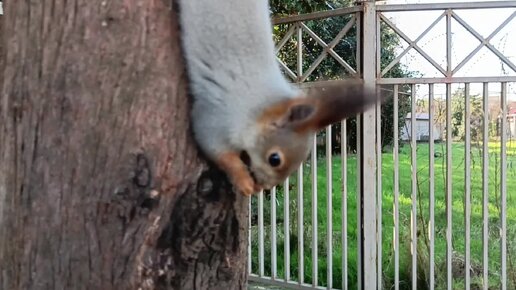Забавные и почти ручные белки поселились на кипарисе на улице Ромашек в Адлере. Конец января 2024.