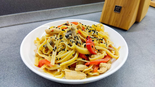 Рецепт очень вкусной лапши вок с курицей и овощами