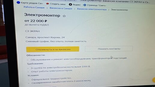 Электромонтёр на СЗ "Экран". Смешная зарплата от 22000р до вычета ндфл.
