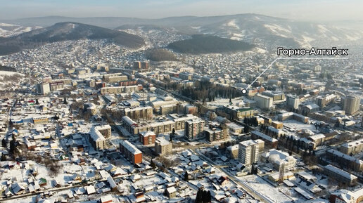 Река Катунь и зимний Горно-Алтайск. Небольшой полёт над республикой Алтай.