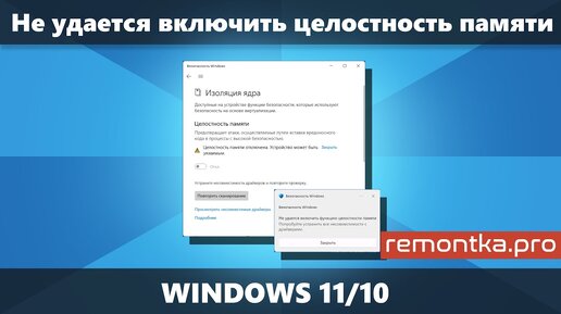 Не удается включить Целостность памяти — устраните несовместимость драйверов (Решение)