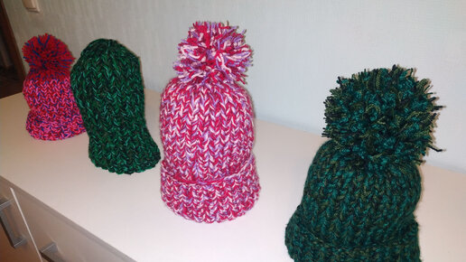 Шапка c отворотом спицами