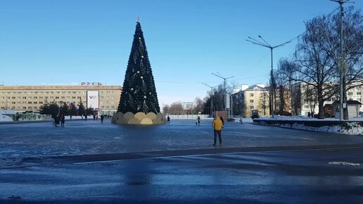 240202 Почти весенний зимний ден площад Ленина каток ёлка Жители катаются коньках уборка снег г Орел