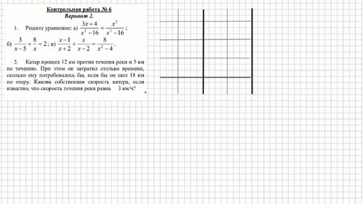 8 класс Дробно-рациональные уравнения и текстовые задачи. Контрольная работа. Часть 2