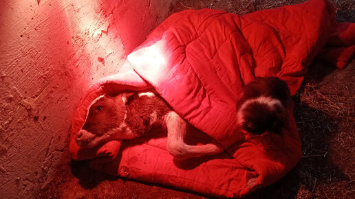 Отелилась корова, телёнок в тяжёлом состоянии.