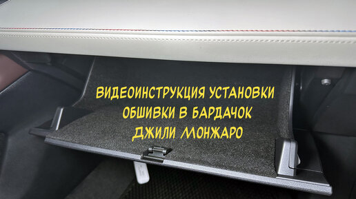 Инструкция, как поклеить обшивку из самоклеящегося карпета в бардачок для Geely Monjaro 2022-. Клеевой слой по всей поверхности