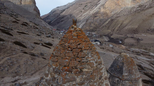 "Город Мертвых" у горного аула Эльтюбю, съемка с дрона