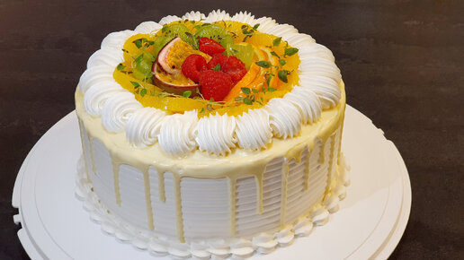 Фруктовый торт ЛЕГКИЙ РЕЦЕПТ. Готовлю на заказ уже много лет! Бисквит из 3 яйц + Супер крем.