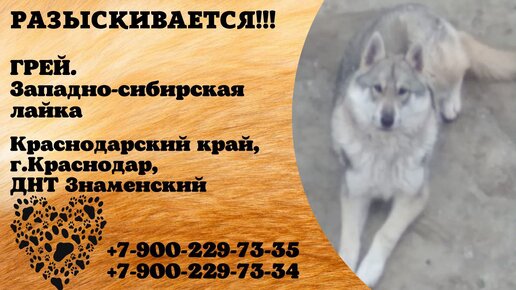 Пропала собака ! ГРЕЙ , Западно-сибирская лайка , Краснодарский край , г. Краснодар