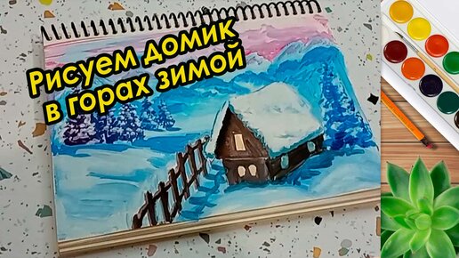 Рисуем домик в горах зимой. Рисунок гуашь