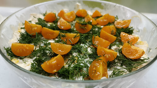 Салат с курицей и кукурузой с помидорками черри