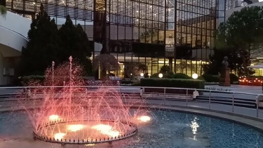 Фонтан с подсветкой во внутреннем дворике аэропорта Сочи, очень раннее утро 1 февраля, жду начала посадки на Москву.