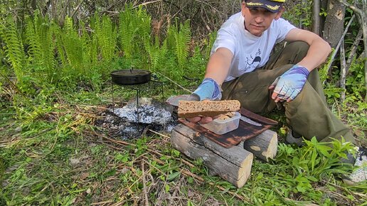 Хлеб в походном котелке. Тонкий алюминий сковородки над углями_часть 4 из 4