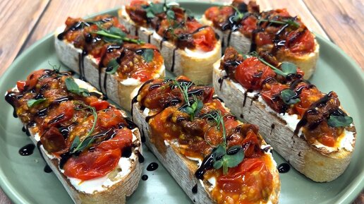 ИТАЛЬЯНСКИЕ БРУСКЕТТЫ С ТОМАТАМИ И ТВОРОЖНЫМ СЫРОМ