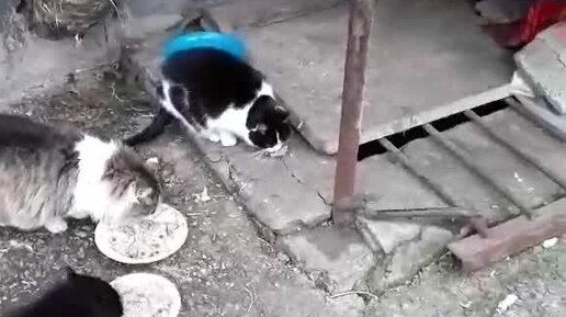 Кормлю кошек. Три кошки-красавицы едят кашу