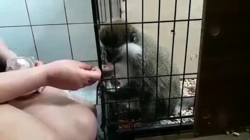 Зеленая мартышка Лола в первое время после поступления. Архив
