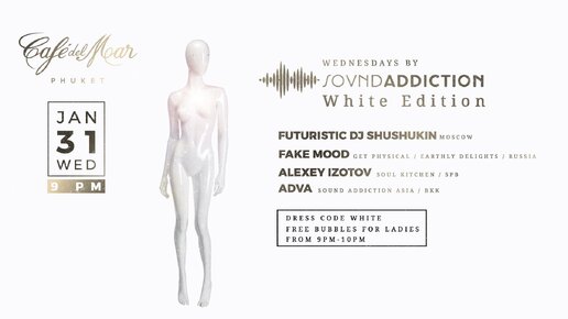 Вечеринка Sound Addiction Asia White Edition в клубе Cafe Del Mar Пхукет, Таиланд