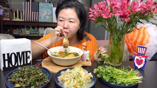 Мукбанг ДОМАШНЕЕ Жаркое, Шпинат По Корейски, КВАШЕНАЯ Капуста, Много Зелени, черный Хлеб!