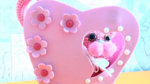 Сумочка сердечко из фоамирана для игрушечного котика, как сделать сумочку из фоамирана, сумочка для игрушки своими руками, розовая сумочка