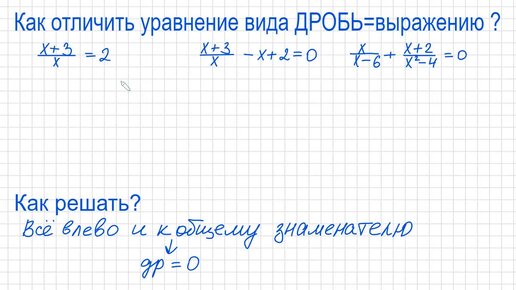 Как решать дробные уравнения Как решать уравнения с дробями ОДЗ Числитель=0 знаменатель не = 0 Как отличить дробное уравнение