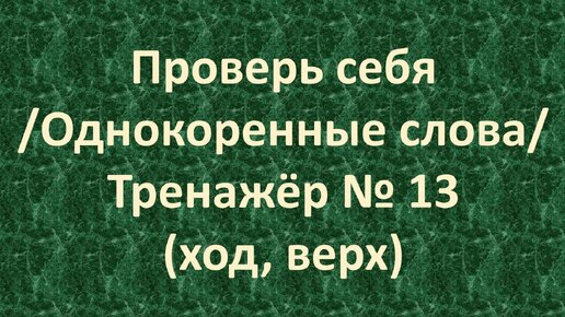 Проверь себя /Однокоренные слова/ Тренажёр № 13 (ход, верх) /1 – 2 класс/ 5+.