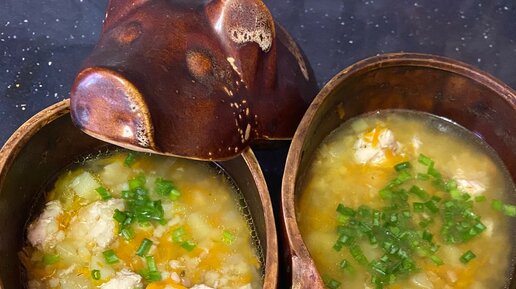 Суп в горшочках. Подойдёт для самых маленьких гурманов с года)))