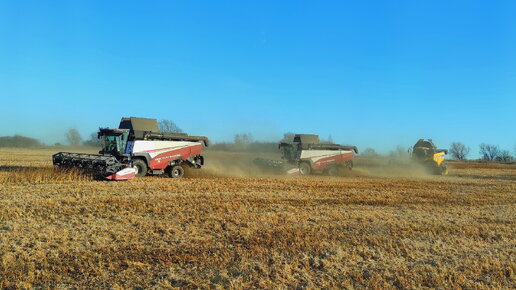 Один комбайн New Holland CX6.90 и два РСМ-161 убирают СОЮ и я же с ними с бункером-перегрузчиком.