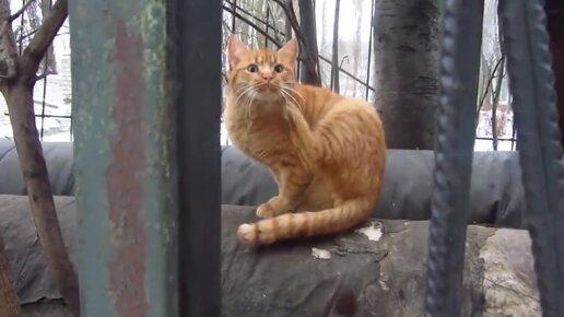 Бродящие кошки собрались всей колонией на теплых трубах во время сильного мороза