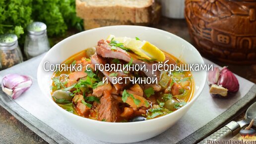Результат превосходит все ожидания! Солянка с говядиной, рёбрышками и ветчиной