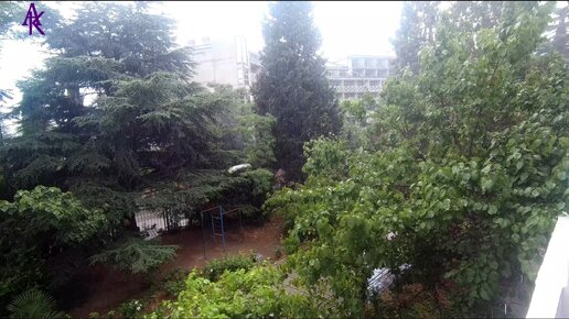 Крым. ЮБК. Мисхор. Летний дождик с балкона 3-го корпуса. Видео из архива. Запись от 02.08.22