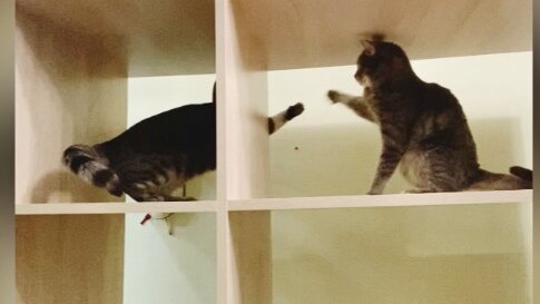 «-А у неё то квартика побольше! 😼 Не честно! 😼» Хвостатые дамы жилплощадь делят 😉