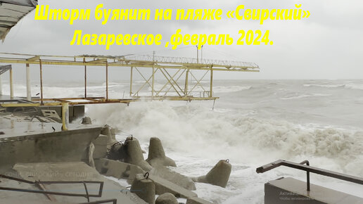 Шторм буянит а пляже "Свирский" , от и бетон крушит! Лазаревскоев феврале 2024г.