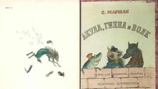 Сказка для маленьких и больших. Акула, Гиена и Волк. Автор Самуил Яковлевич Маршак. Рисунки Кукрыниксы. Детиздат ЦК ВЛКСМ 1938 г.