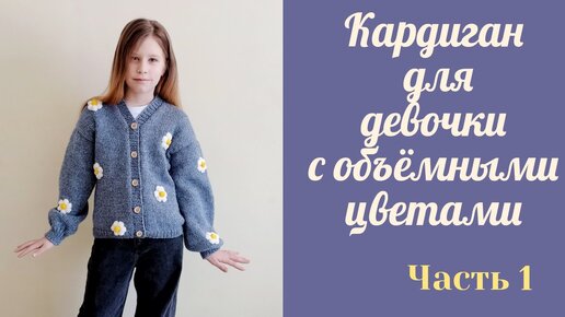 Кардиган для девочки спицами с объемными цветами/ возраст 10-11 лет/ рост 146-152 см/ Часть 1