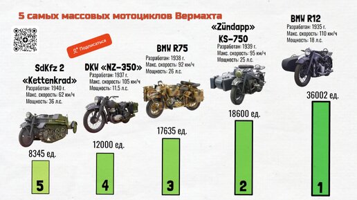 5 самых массовых мотоциклов Вермахта