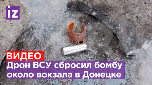 Дрон ВСУ сбросил бомбу на микроавтобус и машины около вокзала в Донецке. Жертв удалось избежать, в момент атаки рядом никого не было