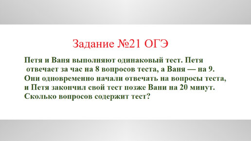 Задача на совместную работу. Задача №8. Разбор задания №21 ОГЭ
