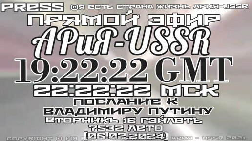 Прямой ЭФИР Вторник 16 Гэйлетъ 7532 лето от С.М.З.Х. [06.02.2024] 👤 ПОСЛАНИЕ К ВЛАДИМИРУ ПУТИНУ