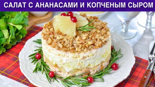 КАК ПРИГОТОВИТЬ САЛАТ С АНАНАСАМИ И КОПЧЕНЫМ СЫРОМ? Вкусный, слоеный, с куриной грудкой, на праздник