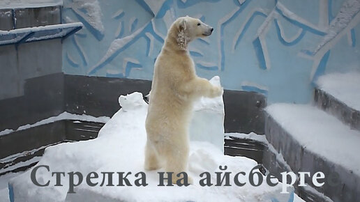 Стрелка уютно устроилась на айсберге и не спешит спускаться, а Белка забирается на нее посмотреть.