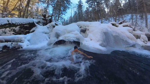 Зимние купания в Калининских водопадах (и красивый лес по пути)