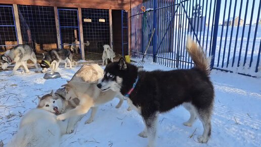 Первый выход в стаю щенка, подкинутого в коробке. Горжусь старшими, они не обижают малышку!