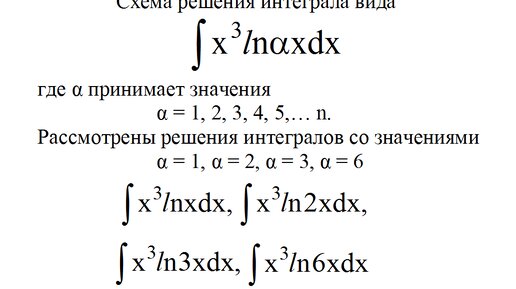 Решенные интегралы ∫x^3lnαxdx, ∫x^3lnxdx, ∫x^3ln2xdx, ∫x^3ln3xdx, ∫x^3ln6xdx
