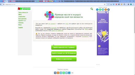 Тест на тип личности по 4 вопросам. Прохожу и проверяю на себе