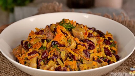Высокая питательность, прекрасный вкус. Салат с печенью, овощами и грибами