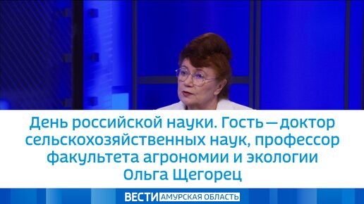 День российской науки. Гость - доктор сельскохозяйственных наук, профессор факультета агрономии и экологии Ольга Щегорец