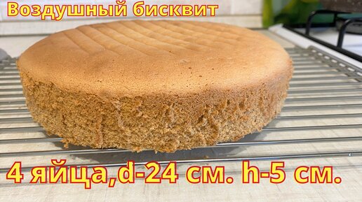 Обещанный бисквит из 4 яиц d-24 см., h-5 см.